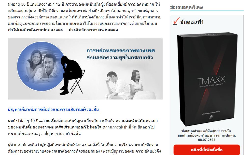 Tmaxx แคปซูลเสริมด้วยสมุนไพรธรรมชาติ 17 ชนิดและแร่ธาตุซึ่งเป็นสูตรสมุนไพรพรีเมี่ยมที่จำหน่ายเป็นผลิตภัณฑ์เสริมอาหารสำหรับเสริมสมรรถภาพทางเพศของผู้ชาย มันให้พลังงานความแข็งแกร่งและเตรียมหนึ่งสำหรับการดำเนินชีวิตที่มีสุขภาพดี อย่างไรก็ตามการใช้งานปกติของ จะเพิ่มความแข็งแกร่งและความอดทนอย่างมากเพื่อประสิทธิภาพที่ดีขึ้นบนเตียงเช่นกัน ไม่ก่อให้เกิดผลข้างเคียงใด ๆ ในขณะที่เพิ่มประสิทธิภาพทางเพศ มันช่วยเพิ่มความใคร่พลังงานทางเพศและทำงานเพื่อให้เร้าอารมณ์ตามธรรมชาติ ให้เวลาคุณมากขึ้นในการนอนบนเตียงเพื่อให้ได้ผลดีที่สุดสมุนไพร Tmaxx ทำงานเหมือนผู้ชายที่มหัศจรรย์